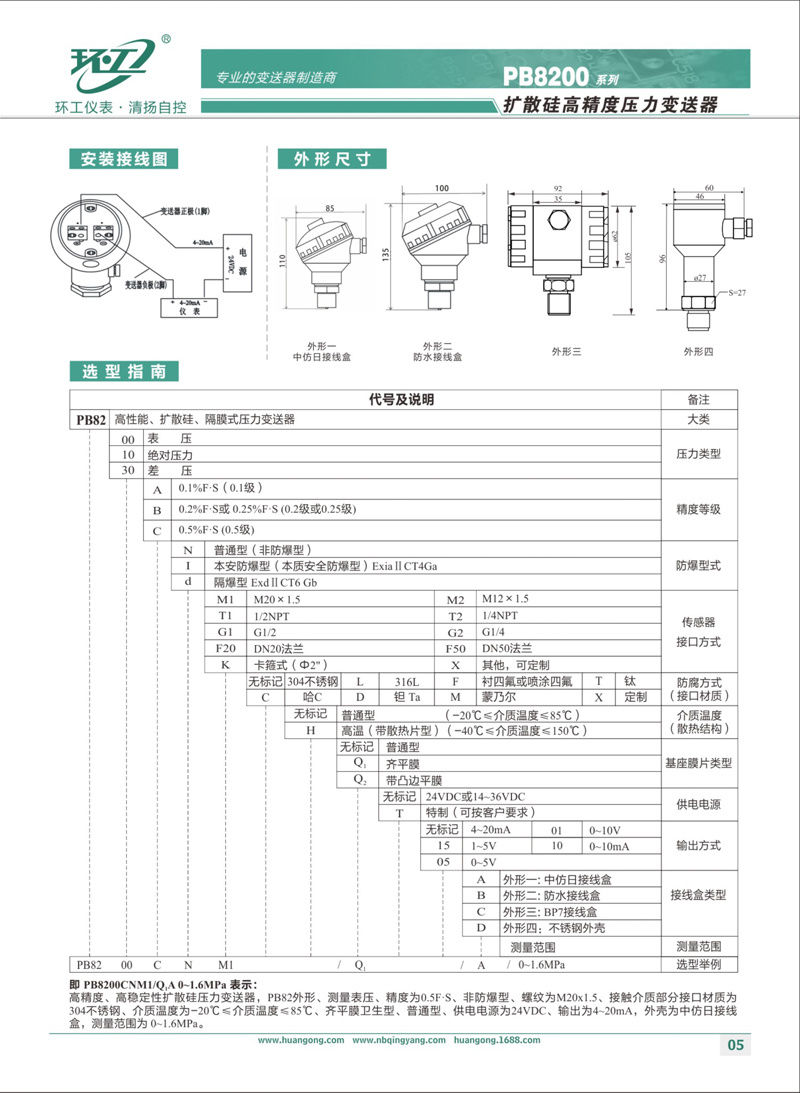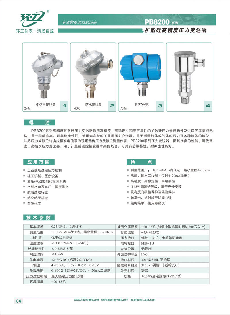 PB8200系列擴散硅高精度壓力變送器