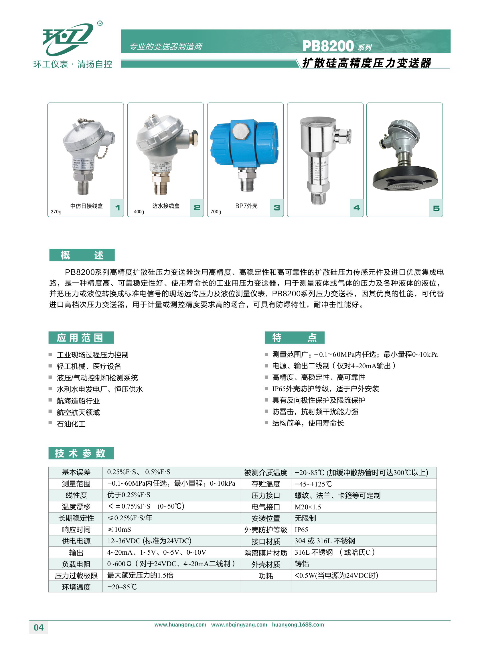 所屬分類: PB8200系列擴(kuò)散硅高精度壓力變送器